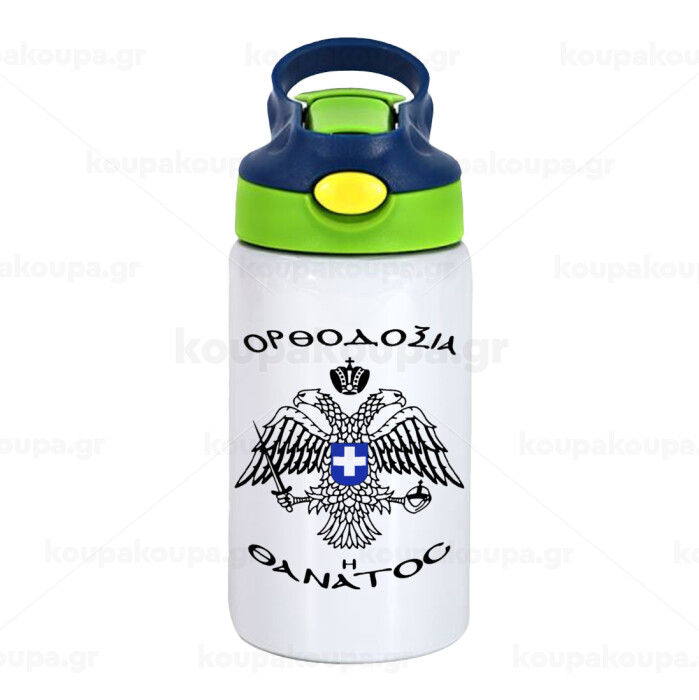 Ορθοδοξία ή Θάνατος, Children's hot water bottle, stainless steel, with safety straw, green, blue (350ml)