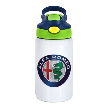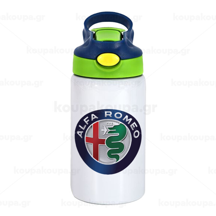 Alfa Romeo, Children's hot water bottle, stainless steel, with safety straw, green, blue (350ml)