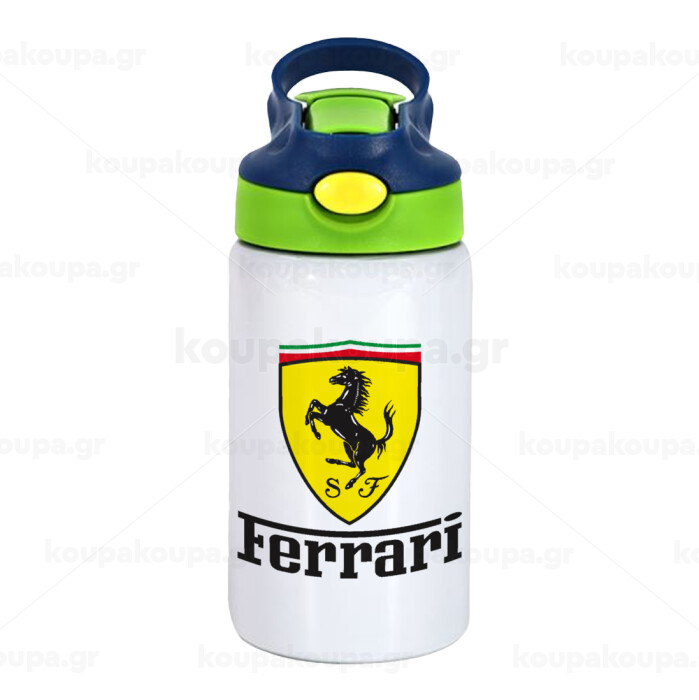 Ferrari S.p.A., Children's hot water bottle, stainless steel, with safety straw, green, blue (350ml)