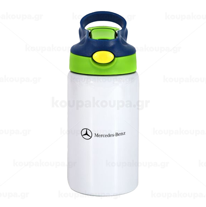 Mercedes small logo, Children's hot water bottle, stainless steel, with safety straw, green, blue (350ml)