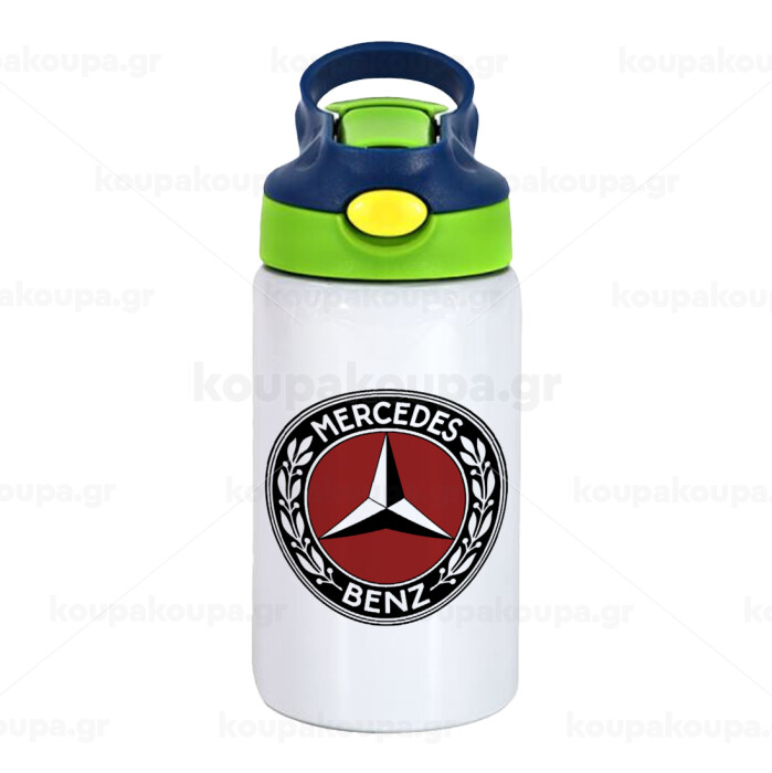 Mercedes vintage, Children's hot water bottle, stainless steel, with safety straw, green, blue (350ml)