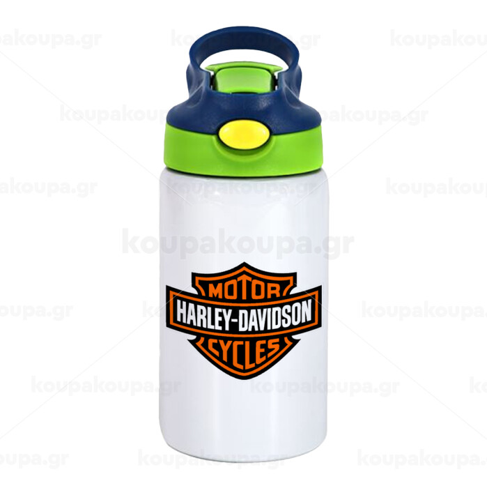 Motor Harley Davidson, Children's hot water bottle, stainless steel, with safety straw, green, blue (350ml)