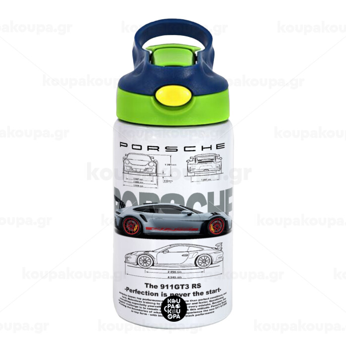 Porsche, Children's hot water bottle, stainless steel, with safety straw, green, blue (350ml)