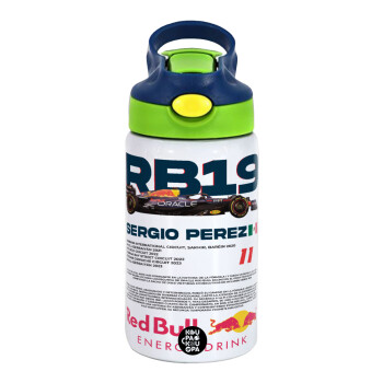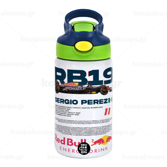 Redbull Sergio Perezi, Children's hot water bottle, stainless steel, with safety straw, green, blue (350ml)