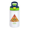 Food pyramid chart, Children's hot water bottle, stainless steel, with safety straw, green, blue (350ml)