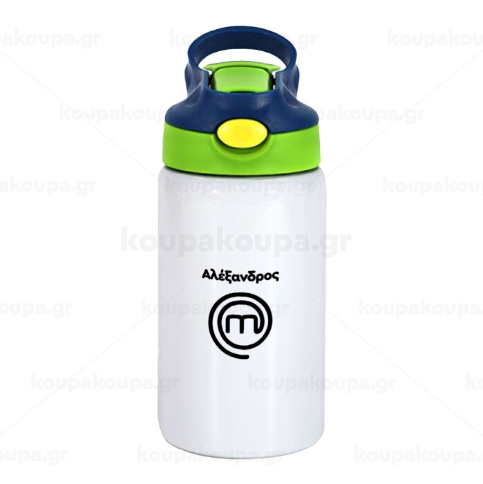 Master Chef Greece, Children's hot water bottle, stainless steel, with safety straw, green, blue (350ml)