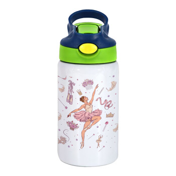 Ballet Dancer, Children's hot water bottle, stainless steel, with safety straw, green, blue (350ml)