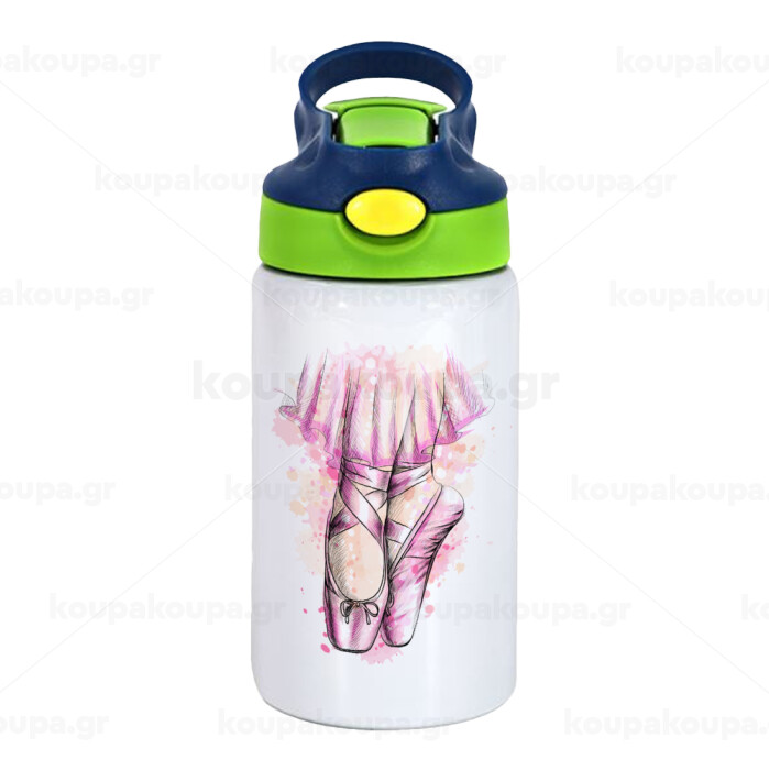 Ballerina shoes, Children's hot water bottle, stainless steel, with safety straw, green, blue (350ml)
