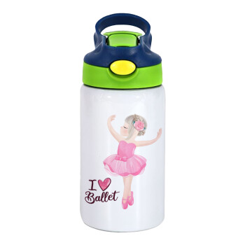 I Love Ballet, Children's hot water bottle, stainless steel, with safety straw, green, blue (350ml)