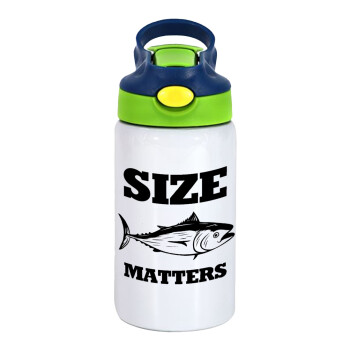 Size matters, Children's hot water bottle, stainless steel, with safety straw, green, blue (350ml)