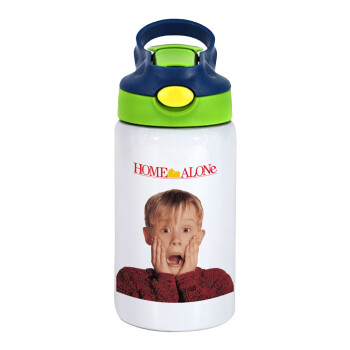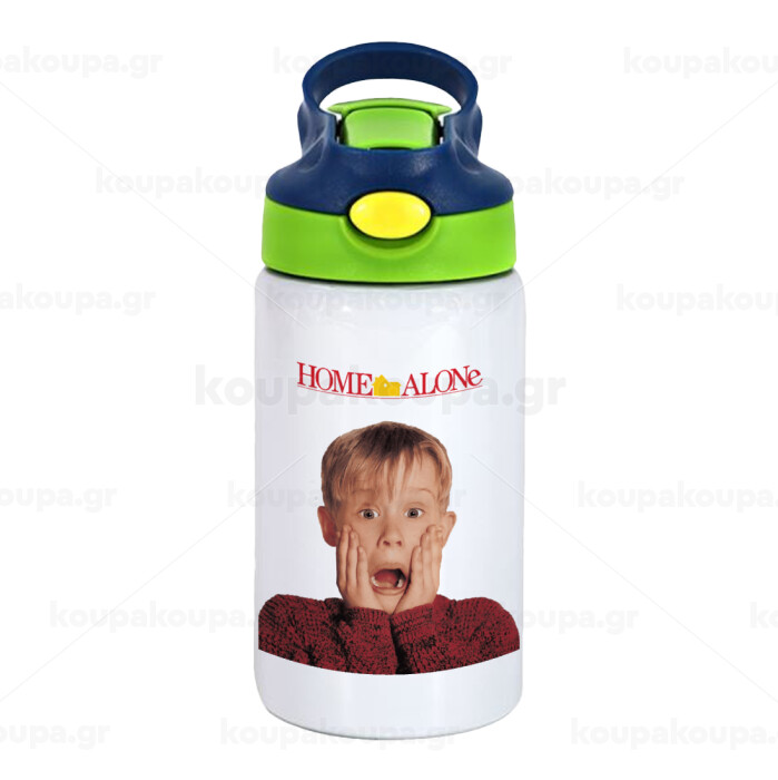 Μόνος στο σπίτι Kevin McCallister Shocked, Children's hot water bottle, stainless steel, with safety straw, green, blue (350ml)