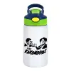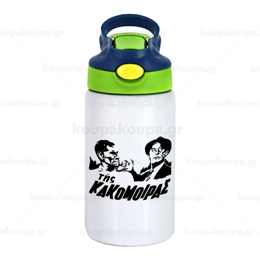 Tis kakomoiras, Children's hot water bottle, stainless steel, with safety straw, green, blue (350ml)