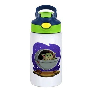 Baby Yoda mandalorian, Children's hot water bottle, stainless steel, with safety straw, green, blue (350ml)