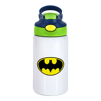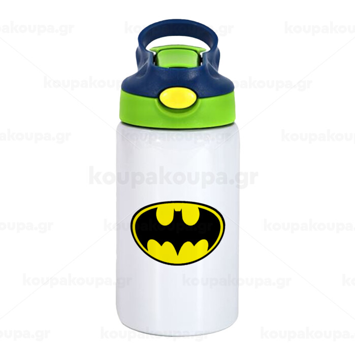 Batman, Children's hot water bottle, stainless steel, with safety straw, green, blue (350ml)