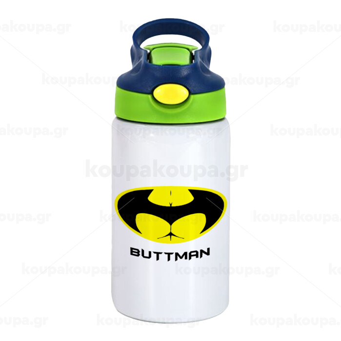 Buttman, Children's hot water bottle, stainless steel, with safety straw, green, blue (350ml)