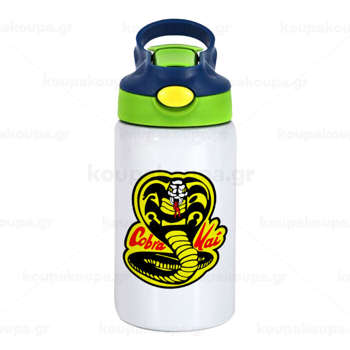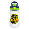 Cobra Kai Yellow, Children's hot water bottle, stainless steel, with safety straw, green, blue (350ml)