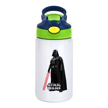 Darth vader, Children's hot water bottle, stainless steel, with safety straw, green, blue (350ml)