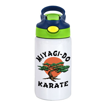 Miyagi-do karate, Children's hot water bottle, stainless steel, with safety straw, green, blue (350ml)