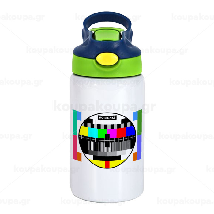 No signal, Children's hot water bottle, stainless steel, with safety straw, green, blue (350ml)