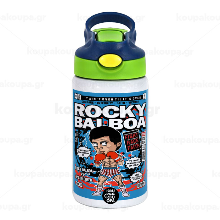 Rocky Balboa, Children's hot water bottle, stainless steel, with safety straw, green, blue (350ml)