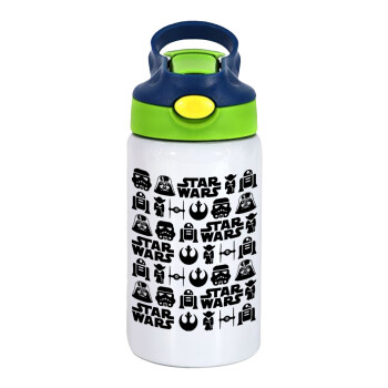 Star Wars Pattern, Children's hot water bottle, stainless steel, with safety straw, green, blue (350ml)
