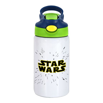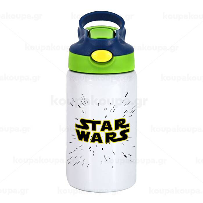 Star Wars, Children's hot water bottle, stainless steel, with safety straw, green, blue (350ml)