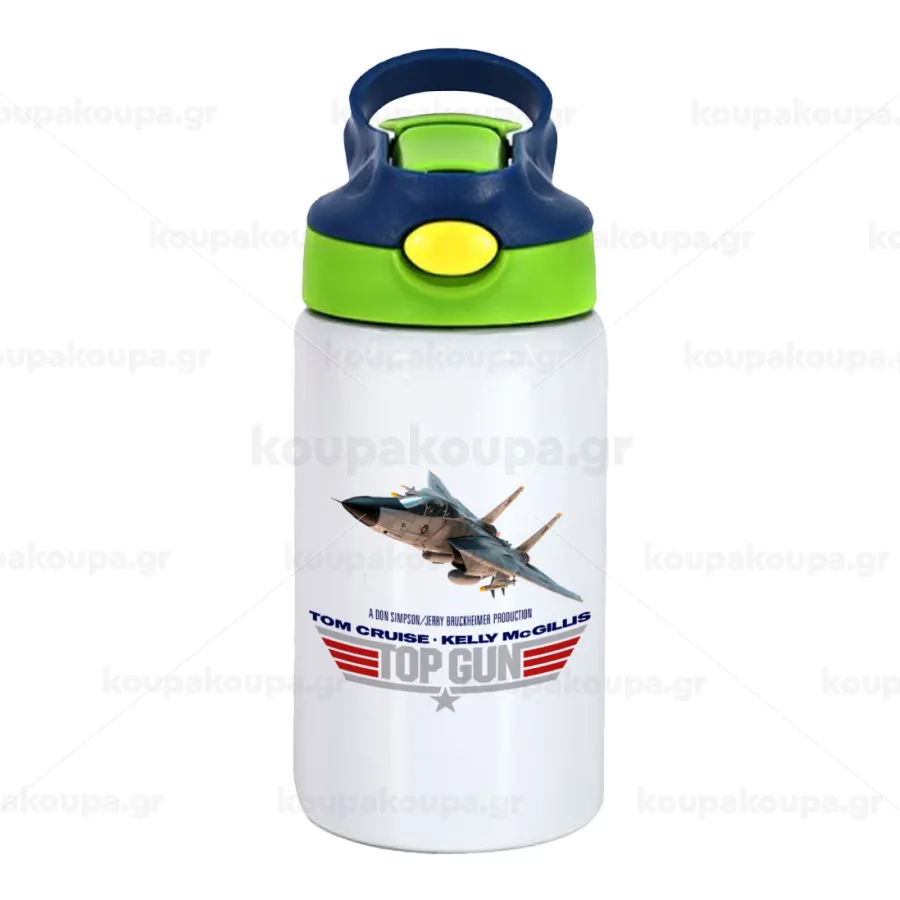 Top Gun, Children's hot water bottle, stainless steel, with safety straw, green, blue (350ml)