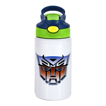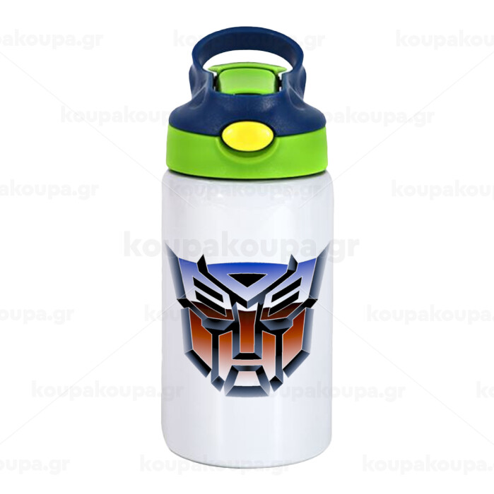 Transformers, Children's hot water bottle, stainless steel, with safety straw, green, blue (350ml)