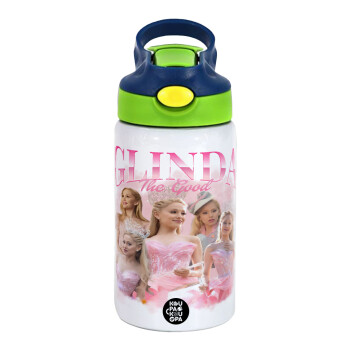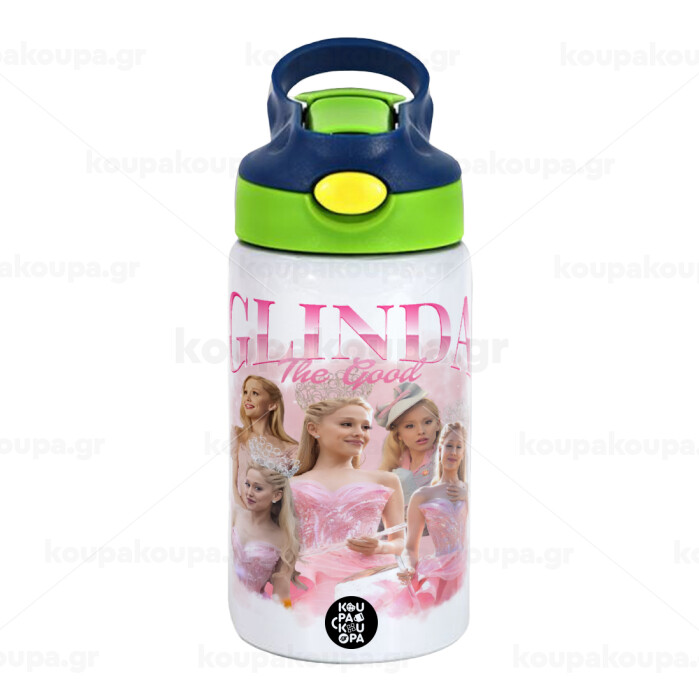 Wicked Glinda, Children's hot water bottle, stainless steel, with safety straw, green, blue (350ml)
