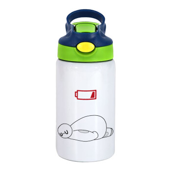 Baymax battery low, Children's hot water bottle, stainless steel, with safety straw, green, blue (350ml)