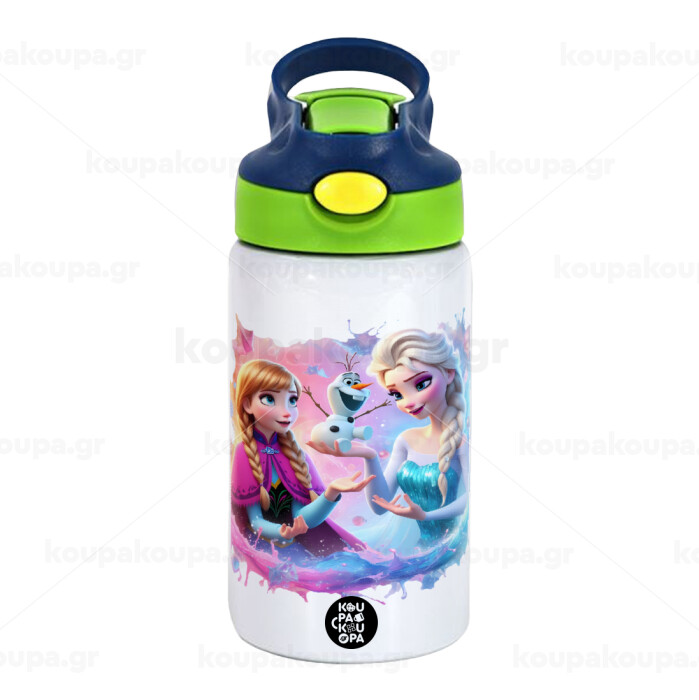 Elsa & Anna Princess, Children's hot water bottle, stainless steel, with safety straw, green, blue (350ml)