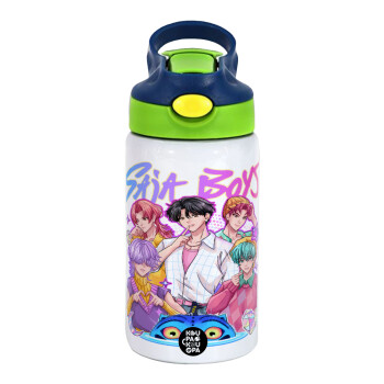 Huntrix Saja Boys, Children's hot water bottle, stainless steel, with safety straw, green, blue (350ml)