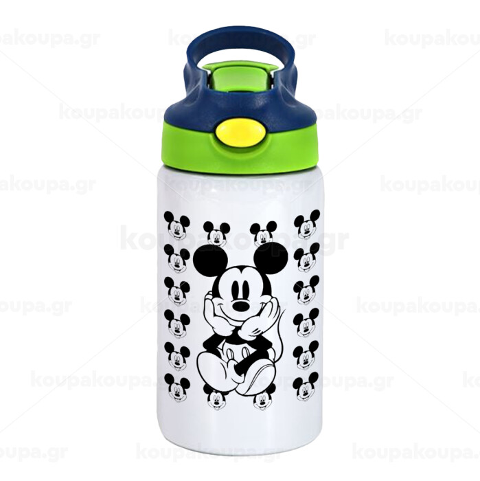 Mickey, Children's hot water bottle, stainless steel, with safety straw, green, blue (350ml)