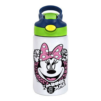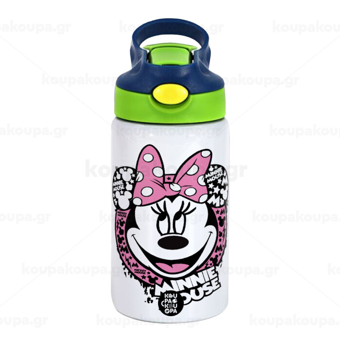 Minnie mouse, Children's hot water bottle, stainless steel, with safety straw, green, blue (350ml)