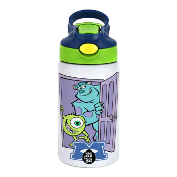 Monster inc, Children's hot water bottle, stainless steel, with safety straw, green, blue (350ml)