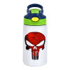 Red skull, Children's hot water bottle, stainless steel, with safety straw, green, blue (350ml)