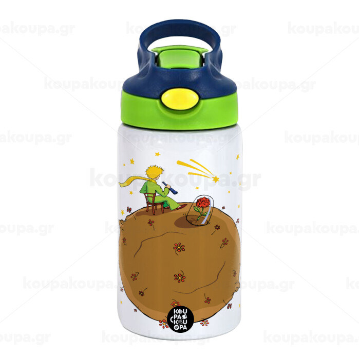 The Little prince planet, Children's hot water bottle, stainless steel, with safety straw, green, blue (350ml)