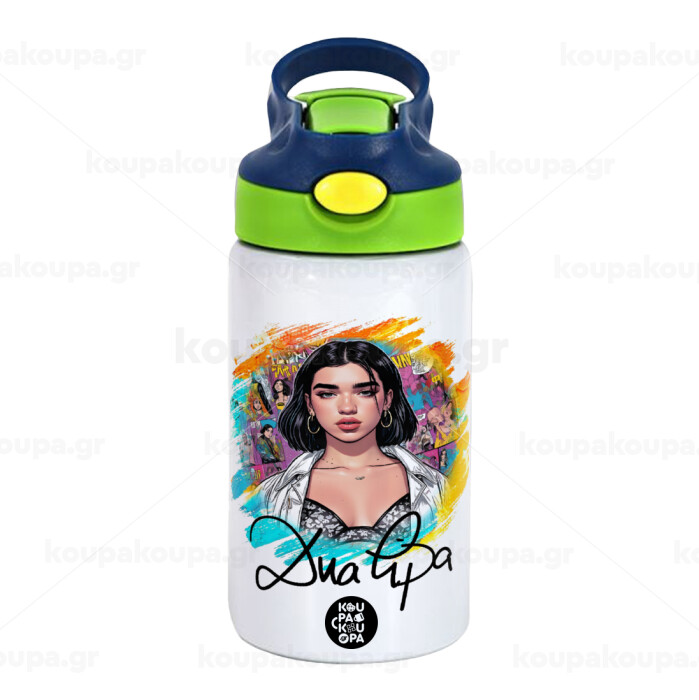 Dua lipa, Children's hot water bottle, stainless steel, with safety straw, green, blue (350ml)