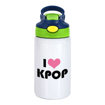 I Love KPOP, Children's hot water bottle, stainless steel, with safety straw, green, blue (350ml)