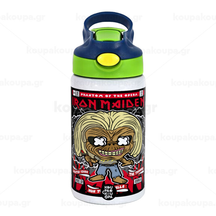 Iron maiden (eddie), Children's hot water bottle, stainless steel, with safety straw, green, blue (350ml)