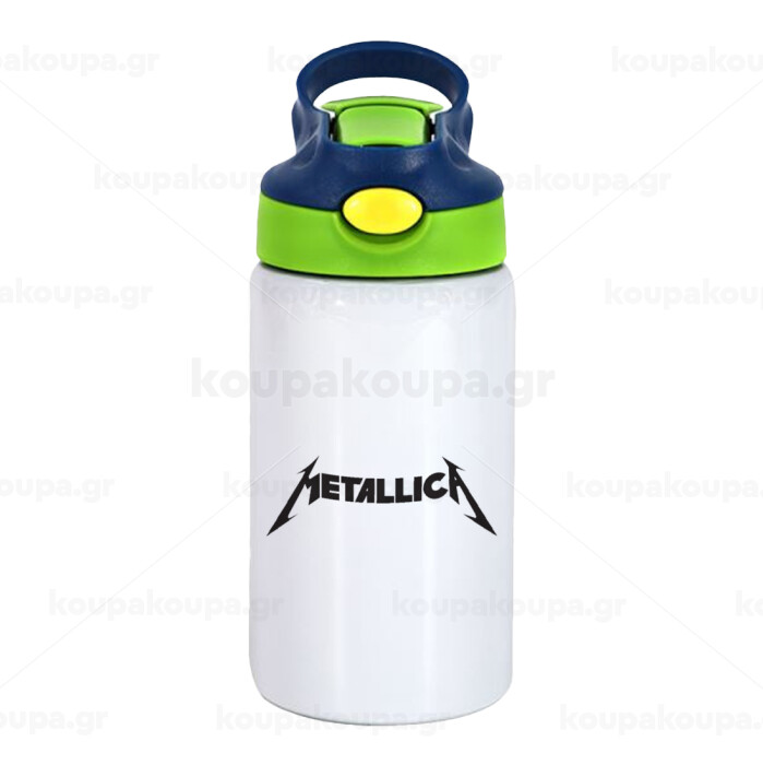 Metallica, Children's hot water bottle, stainless steel, with safety straw, green, blue (350ml)