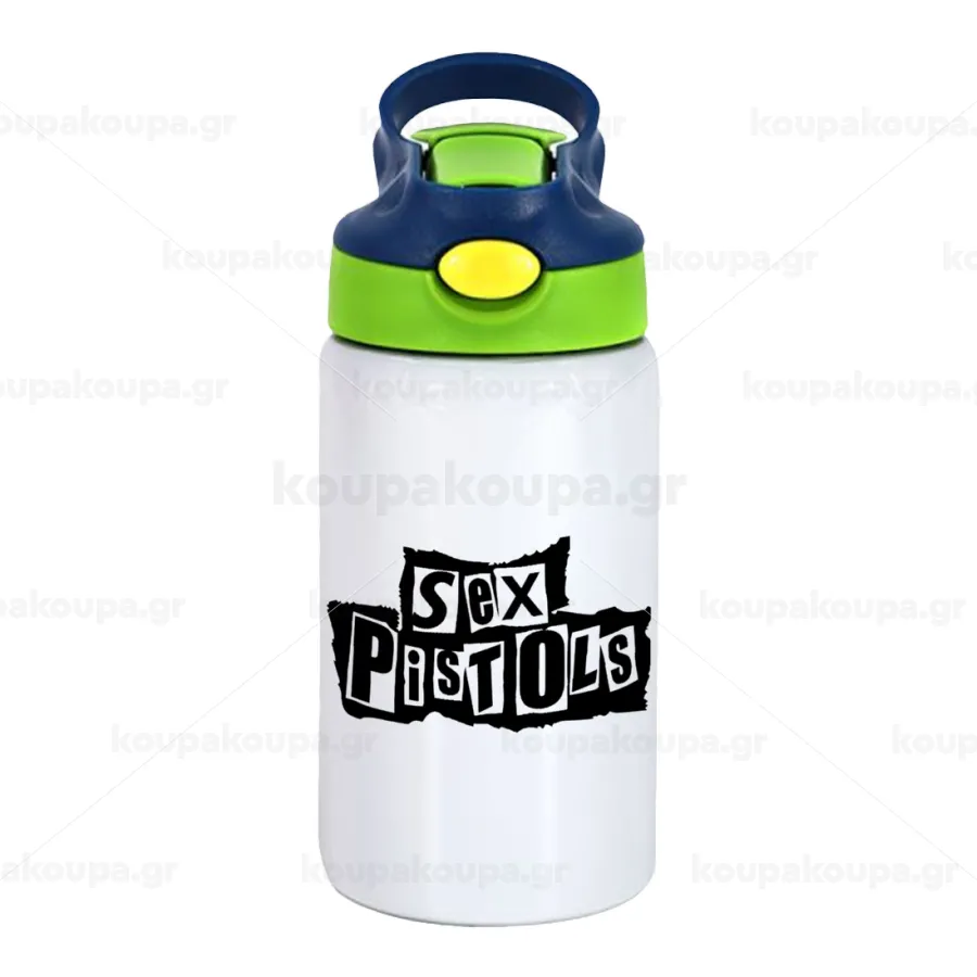 Sex Pistols, Children's hot water bottle, stainless steel, with safety straw, green, blue (350ml)