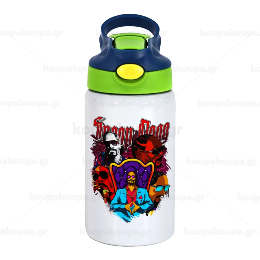 Snoop Dogg, Children's hot water bottle, stainless steel, with safety straw, green, blue (350ml)