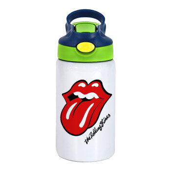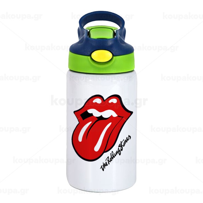 The rolling stones, Children's hot water bottle, stainless steel, with safety straw, green, blue (350ml)