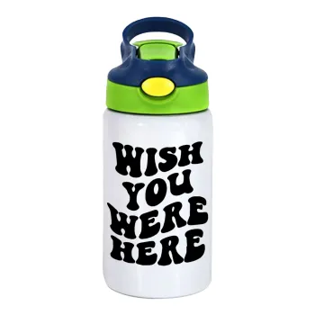 Wish you were here, Children's hot water bottle, stainless steel, with safety straw, green, blue (350ml)