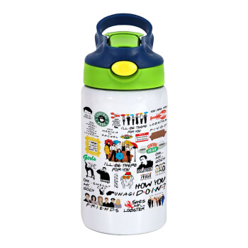 Friends, Children's hot water bottle, stainless steel, with safety straw, green, blue (350ml)