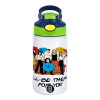 Friends cover, Children's hot water bottle, stainless steel, with safety straw, green, blue (350ml)