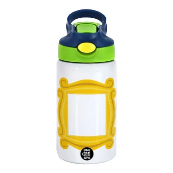 Friends frame, Children's hot water bottle, stainless steel, with safety straw, green, blue (350ml)