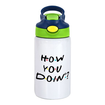 Friends How You Doin'?, Children's hot water bottle, stainless steel, with safety straw, green, blue (350ml)