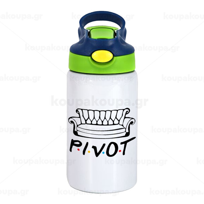 Friends Pivot, Children's hot water bottle, stainless steel, with safety straw, green, blue (350ml)